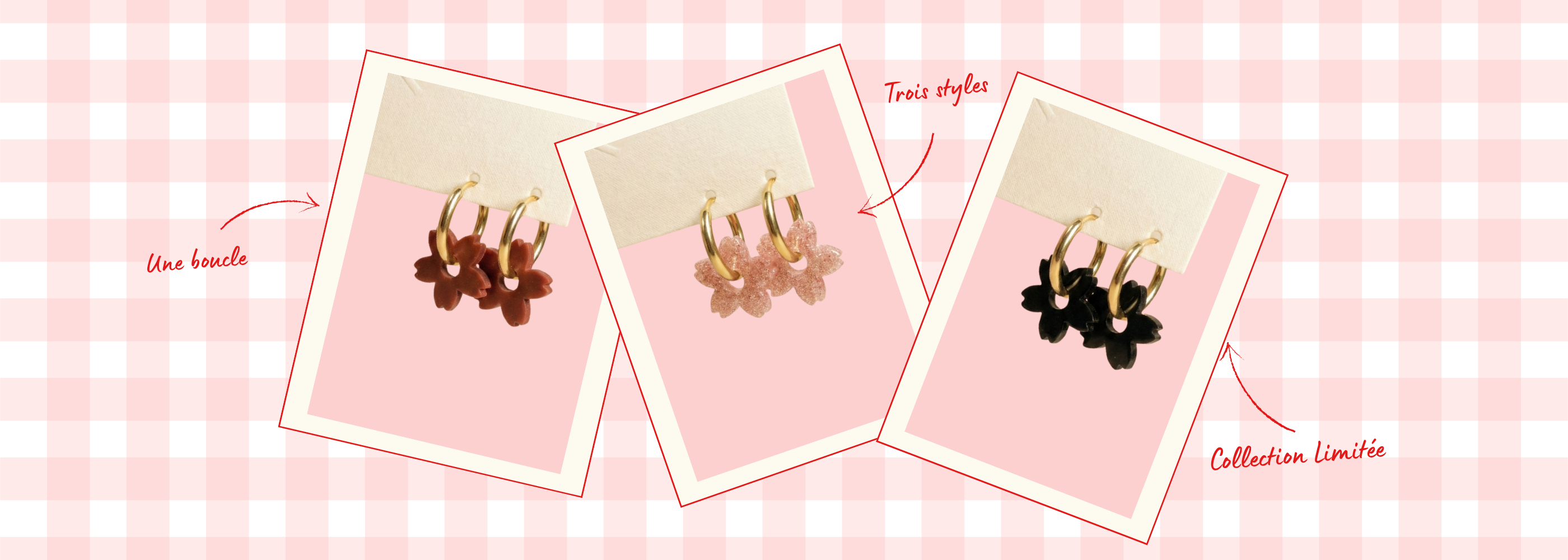 Vous y trouverez nos collections de bijoux à personnaliser, grâce à nos créoles interchangeables, des formes uniques le tout dans un univers très coloré et pailleté ainsi nos jolies pièces décoratives avec nos bougies parfumées.